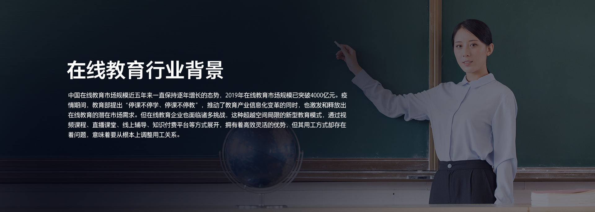 中国在线教育市场规模近五年来一直保持逐年增长的态势,2019年在线教育市场规模已突破4000亿元。疫情期间,教育部提出“停课不停学、停课不停教”,推动了教育产业信息化变革的同时,也激发和释放出在线教育的潜在市场需求。但在线教育企业也面临诸多挑战,这种超越空间局限的新型教育模式,通过视频课程、直播课堂、线上辅导、知识付费平台等方式展开,拥有着高效灵活的优势,但其用工方式却存在着问题,意味着要从根本上调整用工关系。