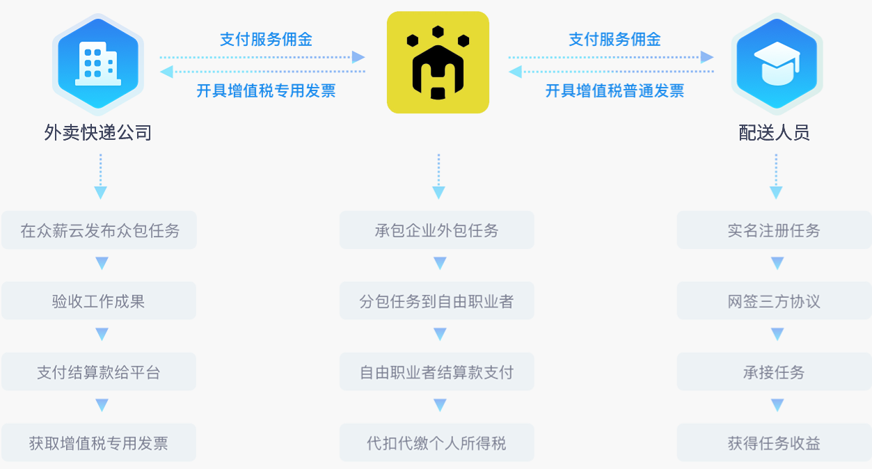 随着电子商务及外卖平台的快速发展,外卖配送、快递配送、生鲜配送、及时配送等行业及从业人员日益增多,但受各类因素影响,人员流动性大、附加成本较高,且用工量的峰谷明显。需要企业严格把控人力及财税成本,提升持续盈利能力。